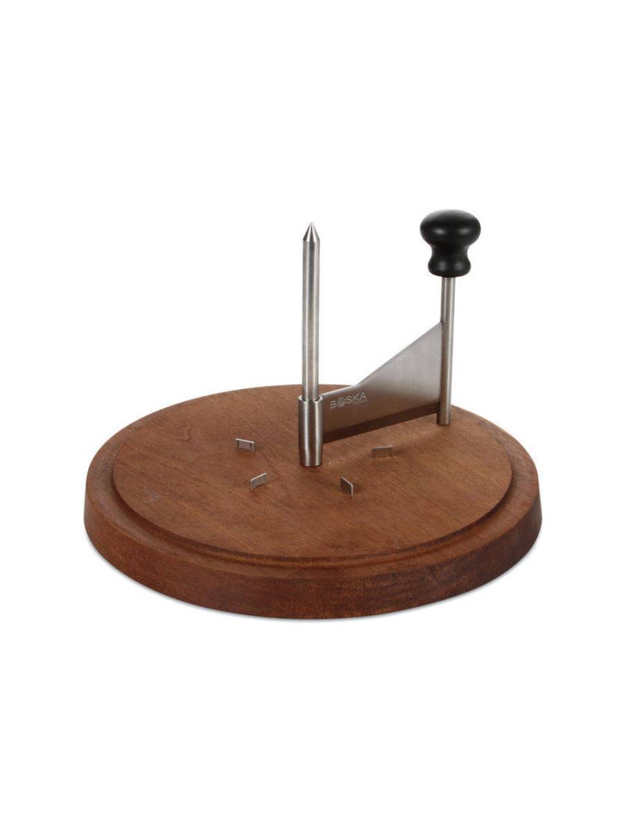 Ο συγκεκριμένος μηχανισμός είναι η ιδανική επιλογή για όποιον θέλει να κόψει τα τυριά του(ιδιαίτερα το ελβετικό Tete de Moine) σε λεπτές φλύδες σαν τρούφα. Με το συγκεκριμένο τρόπο κοπής το τυρί μας απελευθερώνει όλα εκείνα τα υπέροχα αρωματά του επιτρέποντας να το γευτούμε με ένα ποτήρι κρασί παρέα με φίλους Τον ίδιο μηχανισμό μπορούμε να χρησιμοποιήσουμε και για κοπές σοκολατοειδών. Η βάση του είναι κατασκευασμένη από σκούρα οξιά και το κοπτικό του από ατσάλι ψηλής σκληρότητας.