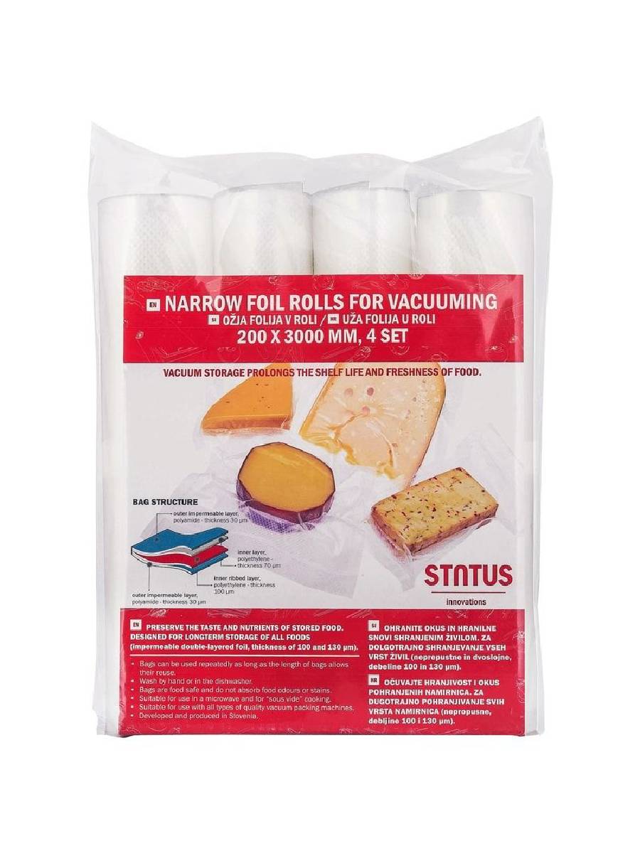 Status, Σακούλες Vacuum Συντήρησης Τροφίμων 20 εκατ. Σε Ρολό 3 Μέτρων, σετ 4 τμχ