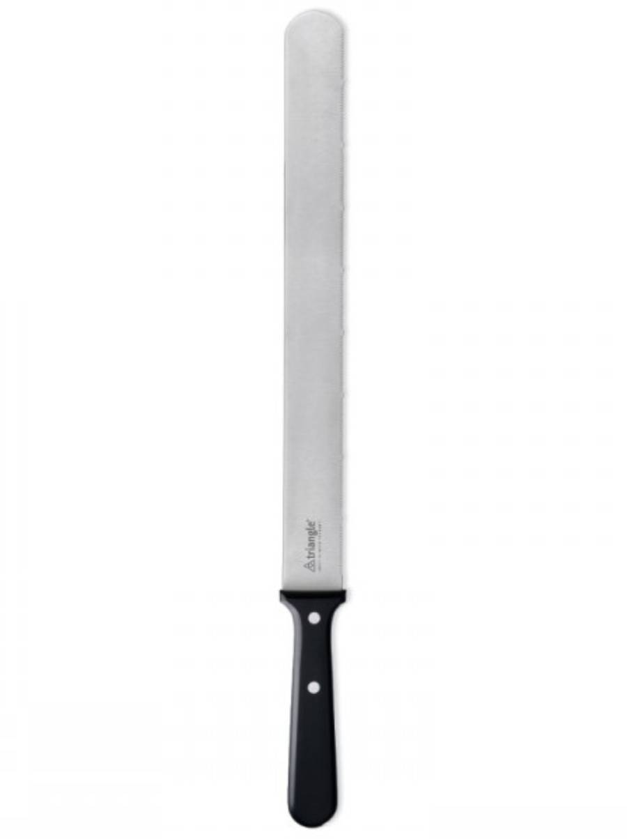 Το παλετομάχαιρο ζαχαροπλαστικής 30 εκ.της Triangle® είναι ένα μαχαίρι πασπαρτού για όλες τις εργασίας αρτοποιίας και ζαχαροπλαστικής. Κόβει σχεδόν όλα τα είδη ζύμης, ωμά ή ψημένα ενώ την ίδια ώρα λειτουργεί ως παλέτα - σπάτουλα. Τα μικρά εξειδικευμένα δόντια στη μία πλευρά κόβουν χωρίς να τραυματίζουν ακόμη και τα πιο ευαίσθητα υλικά. Η λάμα είναι φτιαγμένη από πεπιεσμένο κράμα χειρουργικού ατσαλιού στους 58 HRC.