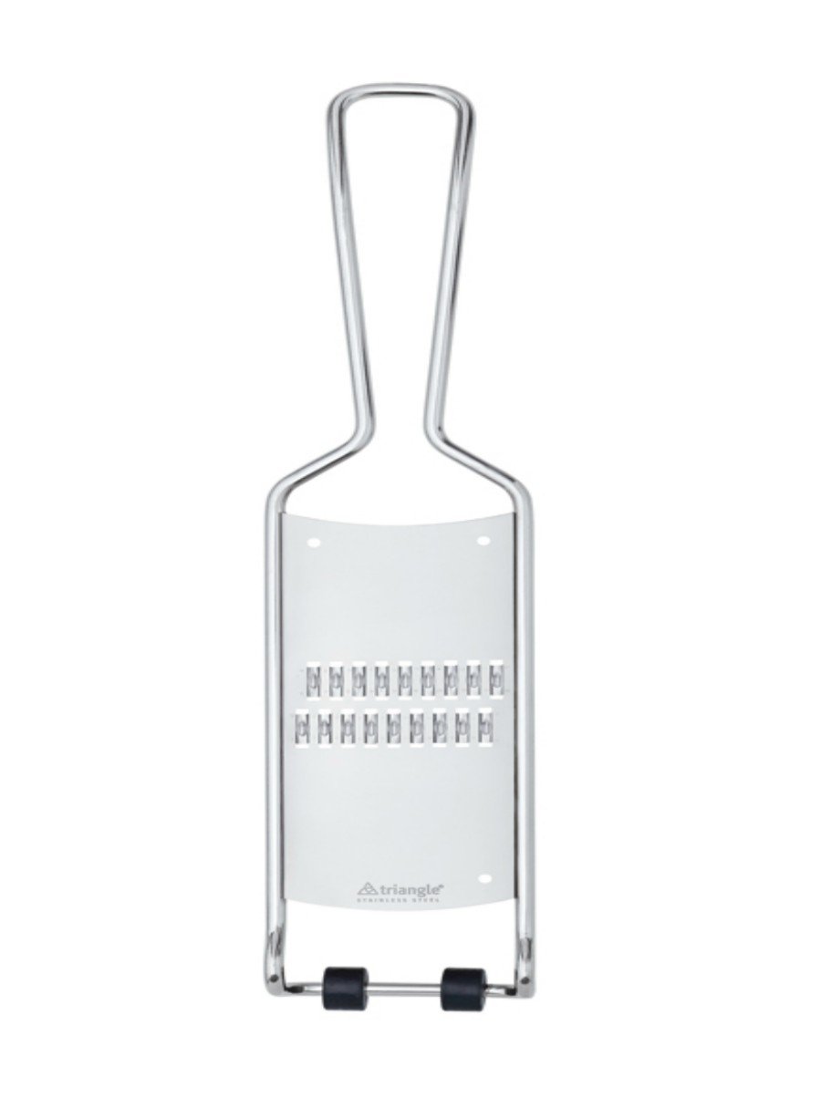 Με καινοτομική θήκη αποθήκευσης για ασφαλή φύλαξη του υλικού. Η θήκη στερεώνεται πίσω από τον τρίφτη και κράτα στο εσωτερικό της τα τρίμματα χωρίς απώλειες. Αν στερεωθεί από μπροστά, τότε αποτελεί πλαίσιο προστασίας της λάμας, ελαχιστοποιώντας τους τραυματισμούς και τη φθορά των κορδελών. Ο τρίφτης μπορεί να λειτουργήσει είτε απευθείας είτε να στερεωθεί σε μπόλ. Είναι εξαιρετικά κοφτερός και συνοδεύεται από την εγγύηση ποιότητας της Triangle® Solingen. Στη βάση του ο τρίφτης στέκεται σε δύο αντιολισθητικούς κυλίνδρους σιλικόνης και χάρη στο σχήμα του μπορεί να γαντζωθεί στο χείλος του μπόλ. Ο συγκεκριμένος τρίφτης julienne δημιουργεί στικς σε μέγεθος σπίρτου.