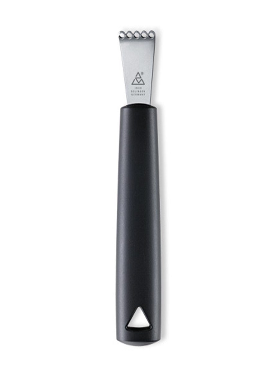 Triangle Αποφλοιωτής Zester Χρησιμεύει σε χρήσεις decor και σκαλίσματος σε φρούτα και λαχανικά, καθώς και σαν mini julienne για τη δημιουργία γιρλάντας. Με πολύ κοφτερά δόντια για εύκολο ξύσμα λεμονιού, πορτοκαλιού. Χρήσιμο και στο bar για τη διακόσμηση των coctail.