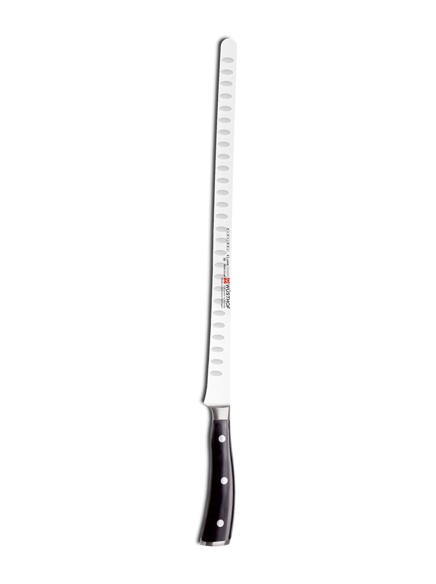Το μαχαίρι Wusthof Classic Ikon είναι ιδανικό μαχαίρι σολομού, σχεδιασμένο για κοπές πάχους χαρτιού, εύκαμπτο σε όλο του το μήκος. Η αυλακωτή άκρη της λάμας δημιουργεί τους θύλακες του αέρα που αποτρέπουν και τις πλέον λεπτές ή μαλακές φέτες από το να κολλήσουν πάνω στη λεπίδα. Design, εργονομία και η γνωστή ποιότητα Wusthof συνδυάζονται τέλεια σε μια σειρά η οποία σχεδιάστηκε για να σας προσφέρει την απόλυτη εμπειρία κοπής. Καινοτόμο σχέδιο λαβής για άνεση και πλήρη έλεγχο. Ειδικά σχεδιασμένο στήθωμα, για εύκολο ακόνισμα και τέλειες κοπές. Εξαιρετικά κοφτερό.